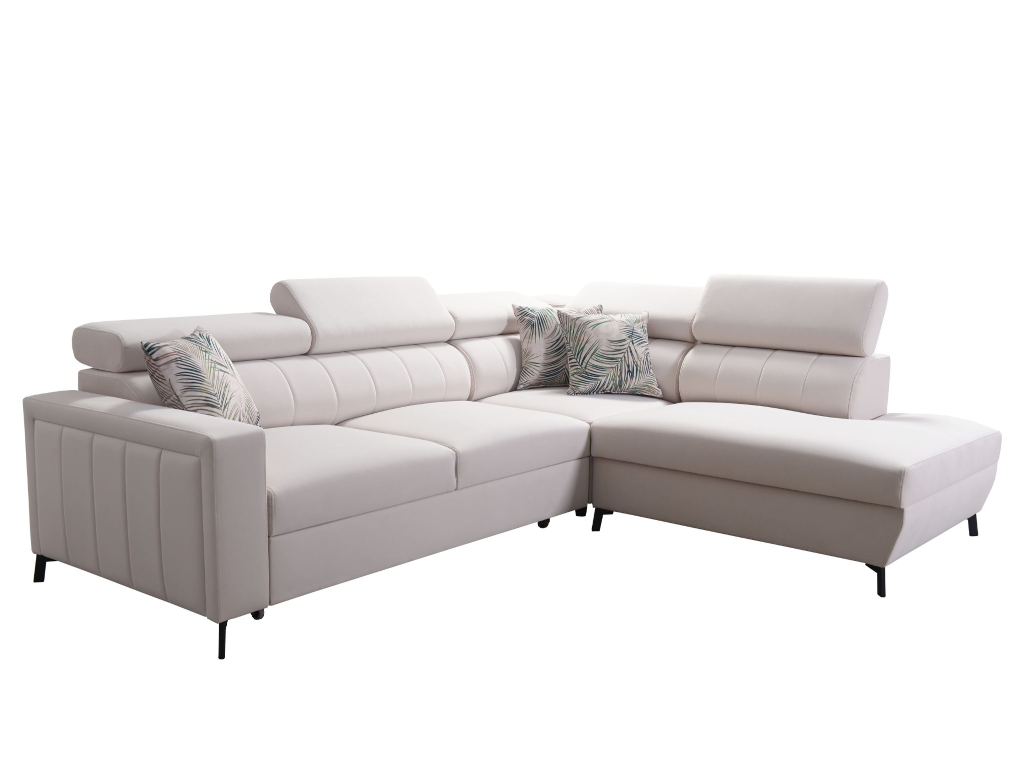 Narożnik BILL 3 to wyjątkowo komfortowy i elegancki narożnik do salonu, który łączy nowoczesny design z praktycznymi rozwiązaniami. Stylowe przeszycia, regulowane zagłówki oraz smukłe metalowe nóżki nadają mu lekkości i nowoczesnego charakteru, dzięki czemu doskonale prezentuje się w każdej aranżacji – zarówno nowoczesnej, jak i klasycznej.