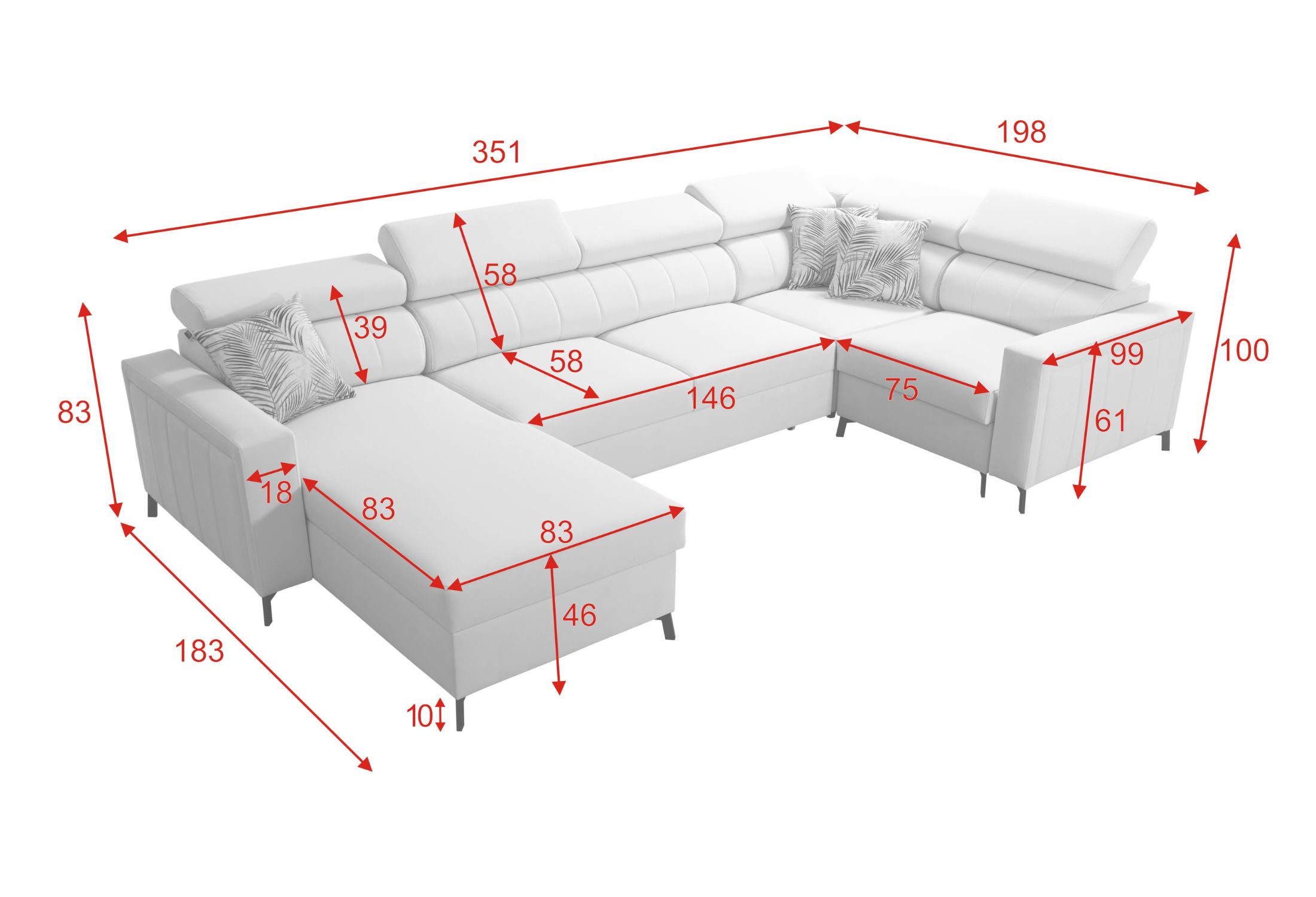 Sześć regulowanych zagłówków umożliwia idealne dopasowanie pozycji oparcia do użytkownika. Zapewniają one wygodne podparcie głowy i karku, zwiększając komfort podczas odpoczynku, oglądania telewizji lub relaksu.