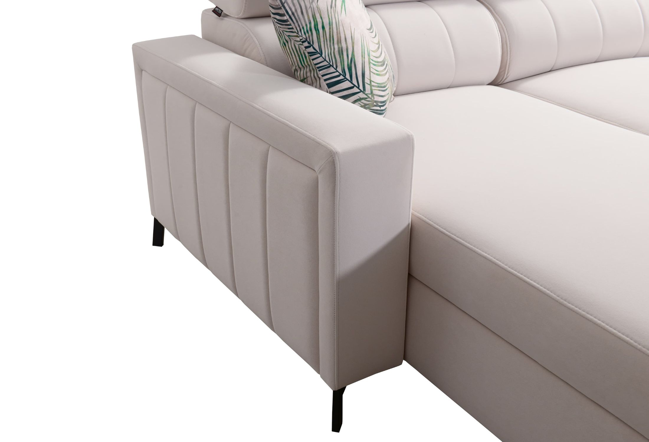 Narożnik BILL 6 to nowoczesny, przestronny narożnik do salonu, który zachwyca eleganckim designem, dużą powierzchnią oraz maksymalną funkcjonalnością. Dzięki dopracowanym detalom, regulowanym zagłówkom i smukłym metalowym nóżkom narożnik doskonale wpisuje się w nowoczesne i ekskluzywne aranżacje wnętrz.