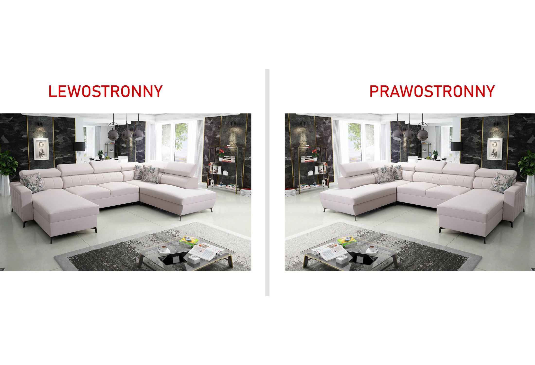Narożnik może zostać wykonany w całości w dowolnej wybranej tkaninie, co pozwala idealnie dopasować go do aranżacji wnętrza.