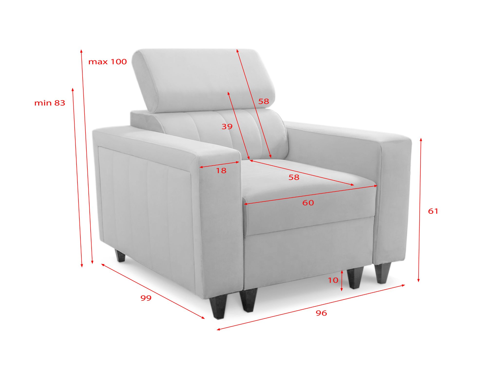 Fotel BILL to elegancki i wygodny fotel wypoczynkowy, który doskonale uzupełni aranżację nowoczesnego salonu. Minimalistyczna forma, regulowany zagłówek oraz solidna konstrukcja sprawiają, że fotel zapewnia wysoki komfort codziennego użytkowania, a jednocześnie stanowi stylowy element wystroju wnętrza.