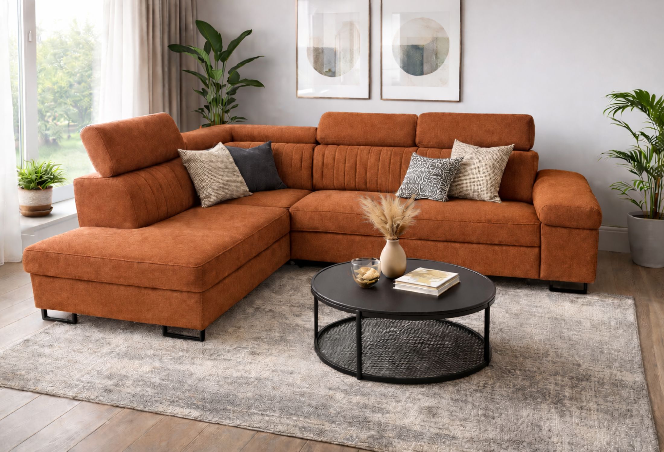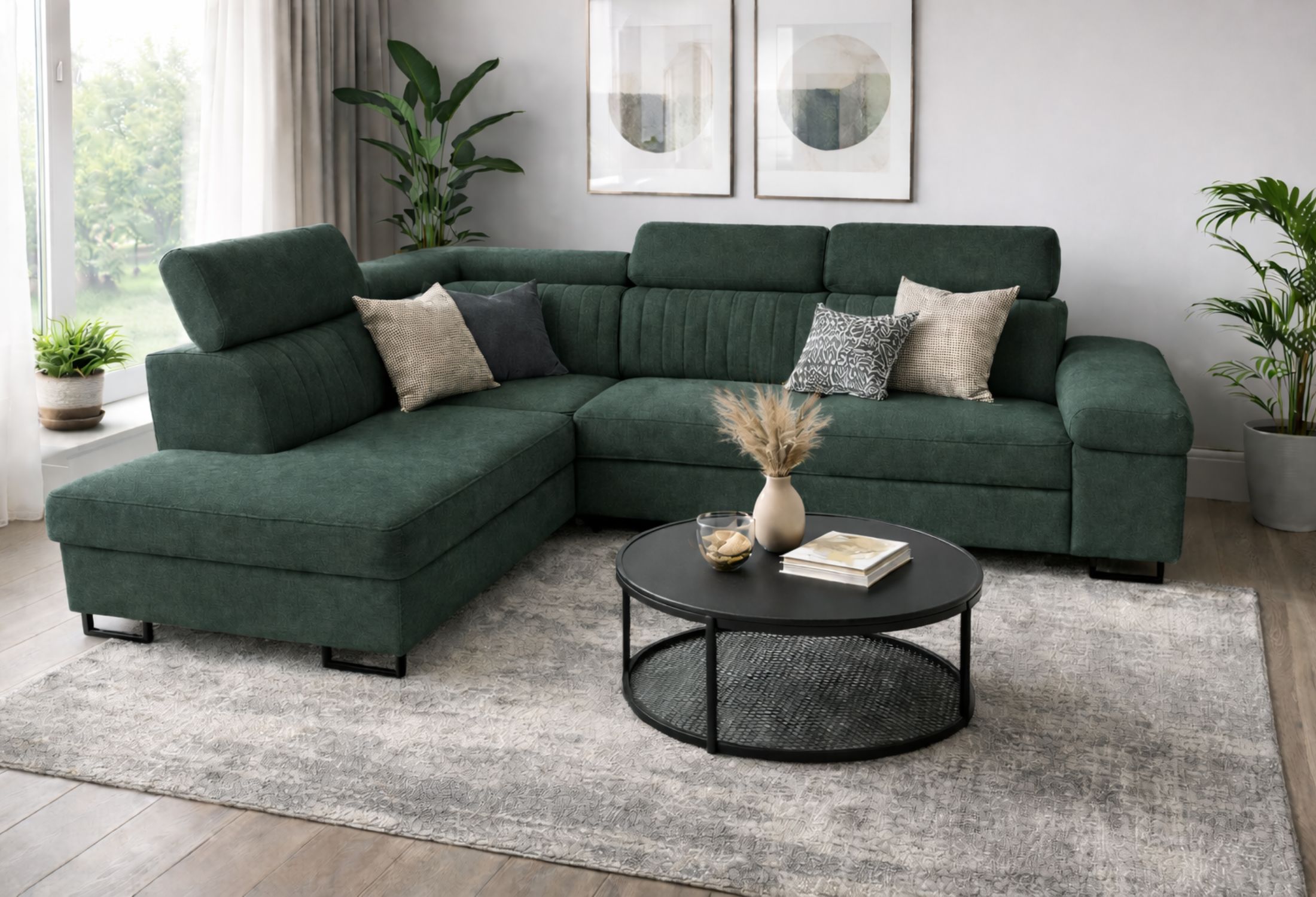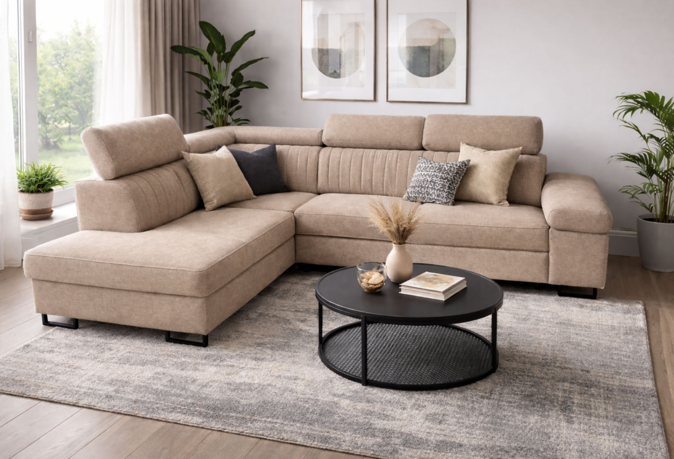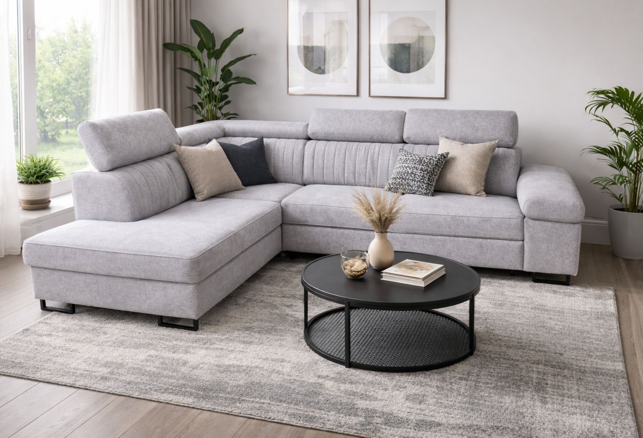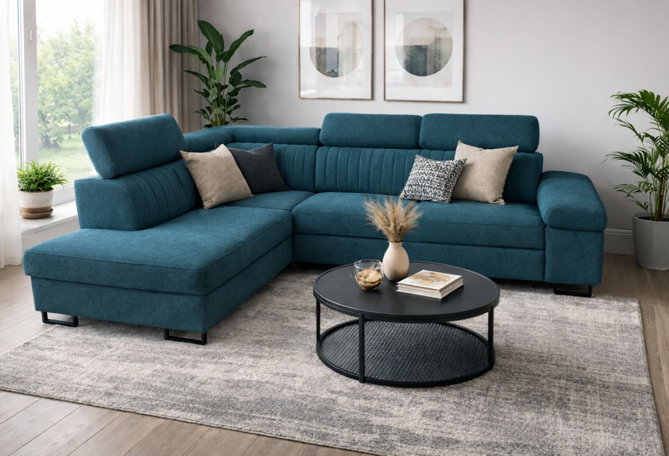 Narożnik z funkcją spania i regulowanymi zagłówkami – nowoczesny design i maksymalny komfort