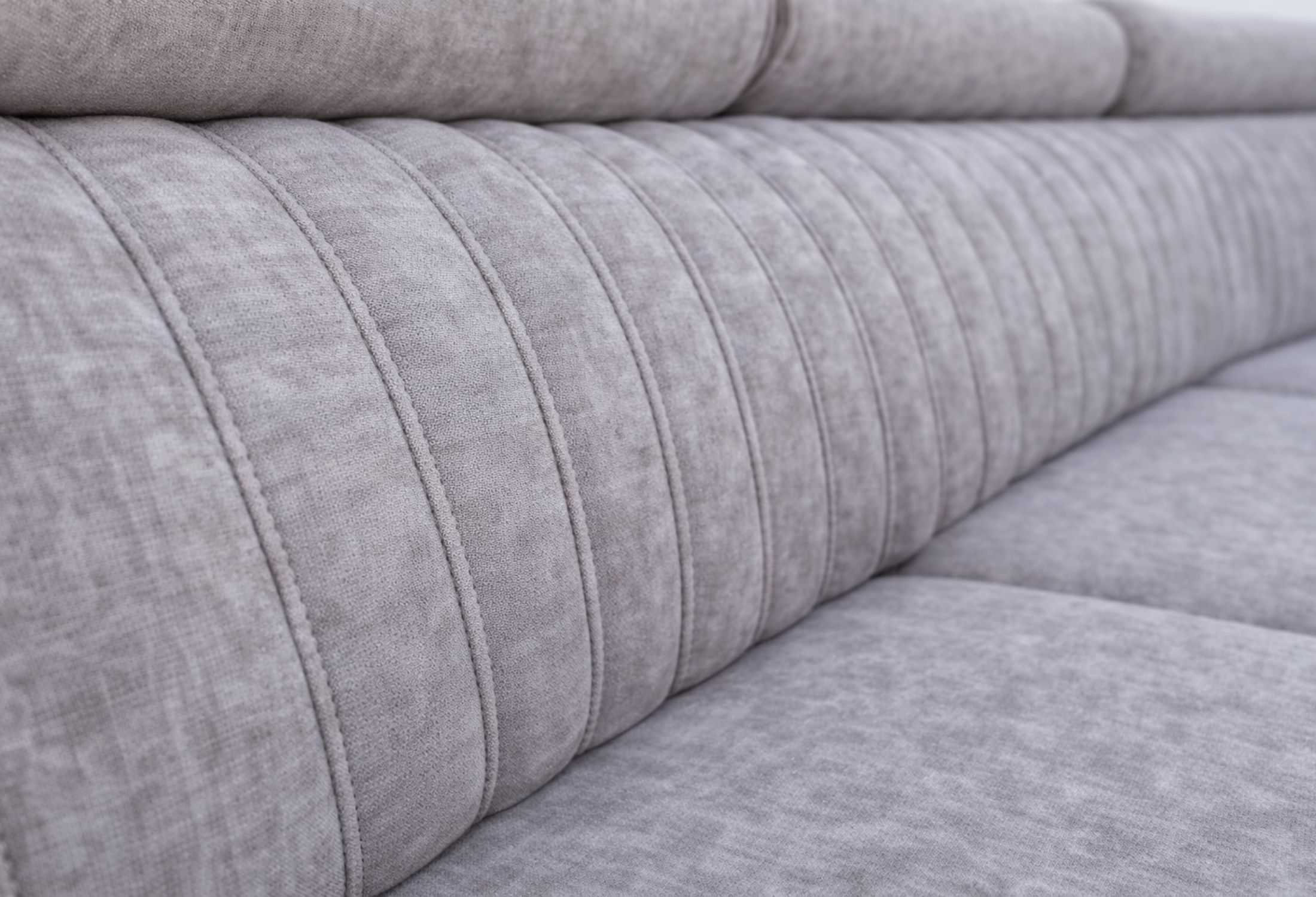 Nowoczesny narożnik w jasnym, eleganckim odcieniu to propozycja dla osób, które cenią minimalistyczny styl, funkcjonalność i wygodę na co dzień. Mebel wyróżnia się subtelnymi, pionowymi przeszyciami na oparciu oraz bocznej części szezlonga, które nadają mu wyjątkowego charakteru i podkreślają staranne wykończenie.
