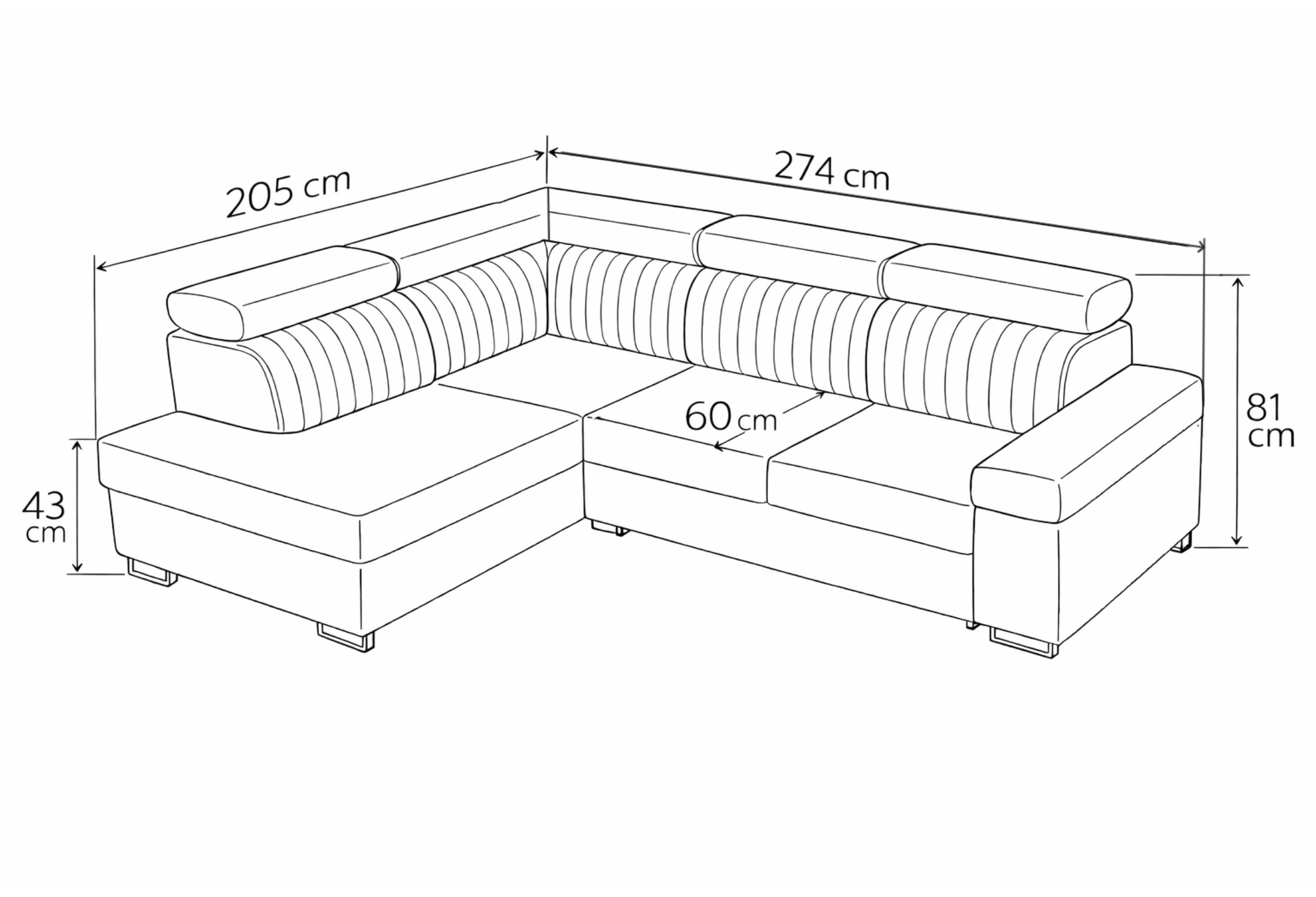 Jeśli szukasz narożnika z funkcją spania 274 x 205 cm, który łączy elegancję z praktycznymi rozwiązaniami – ten model będzie doskonałym wyborem.