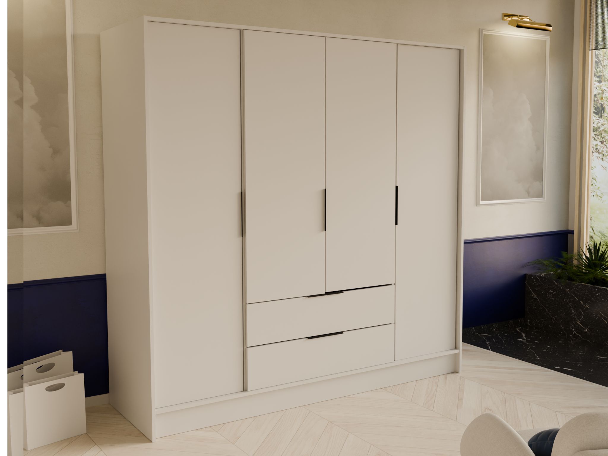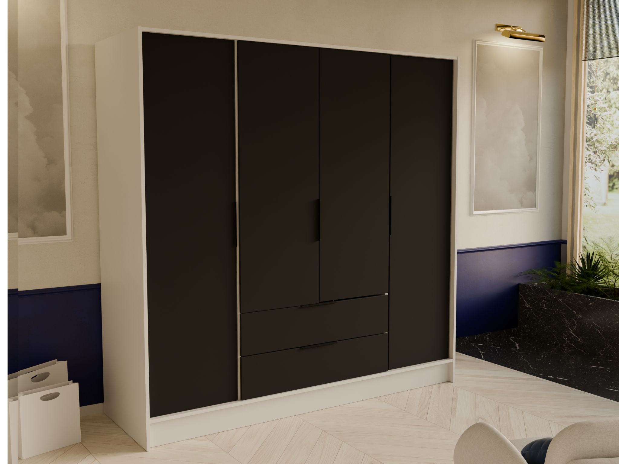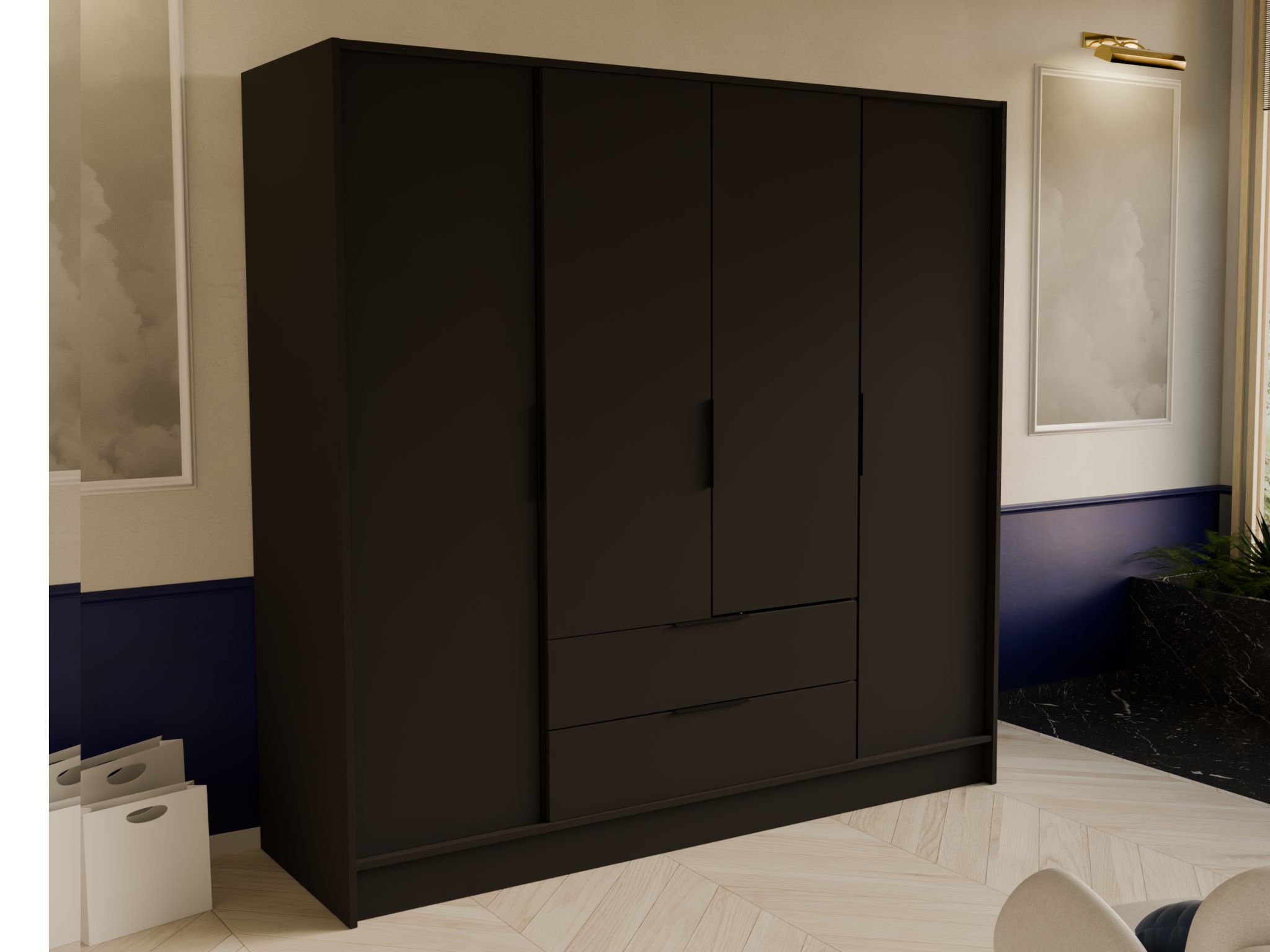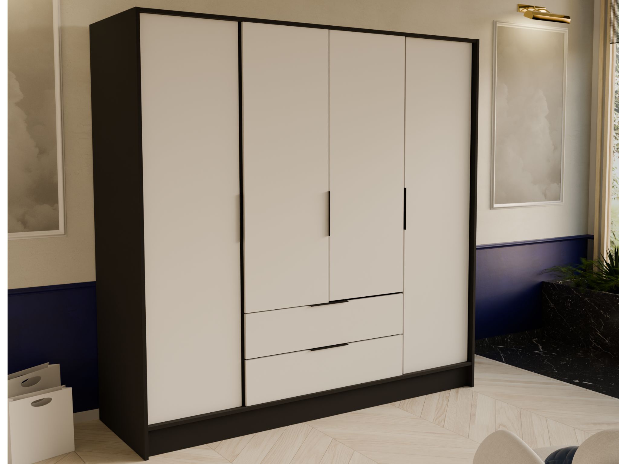 Szafa ubraniowa BRUNO 4-drzwiowa z szufladami – 200 cm